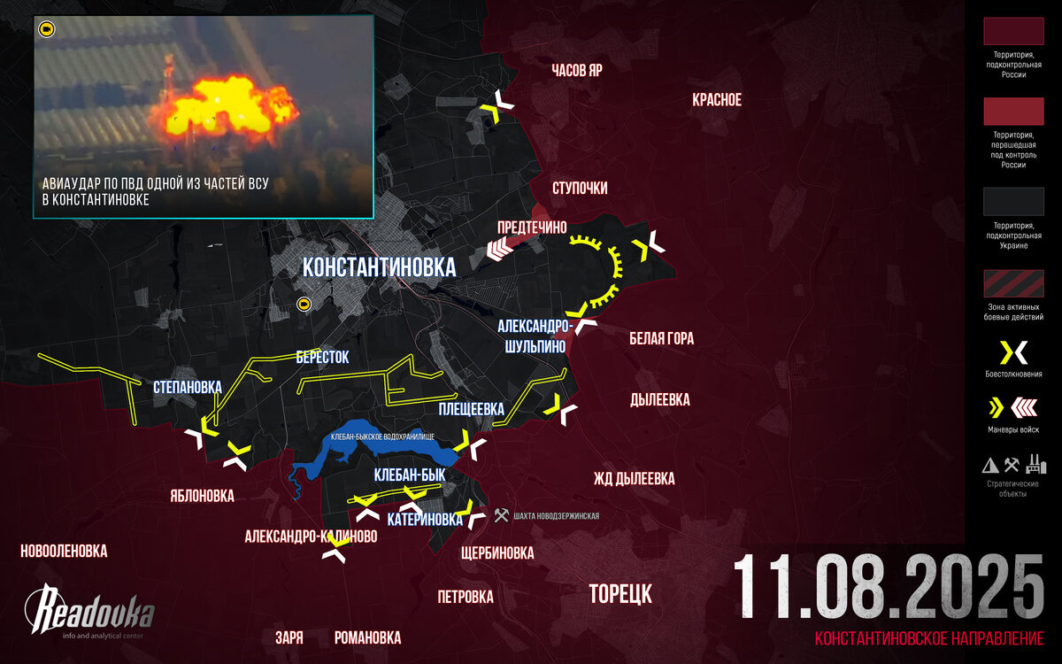 ВС РФ в восточном секторе Константиновского направления сумели овладеть селом Предтечино. 93-я ОМБр ВСУ исчерпала возможности для контратак, и украинские войска отошли непосредственно в частный сектор Константиновки. Однако на данном этапе штурм города крайне маловероятен. Главная задача боев за Предтечино – обеспечение предпосылок для ликвидации глубокого оперативного выступа неприятельских сил, протянувшегося вплоть до самого канала Северский Донец – Донбасс.