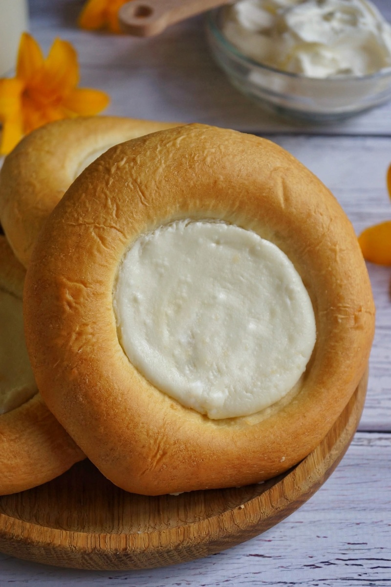 Ватрушки от которых не откажется домовёнок Кузя 😄 Рецепт рассчитан, примерно, на 12-15 шт. Для этого нам понадобится: 🔸Мука 320гр 🔸Сахар 60гр 🔸Молоко 110гр 🔸Яйцо 1шт (категория с1) 🔸Дрожжи сухие 7гр или 25гр живых 🔸Сливочное масло 90гр 🔸Соль (щепотка) Приготовление: Дрожжи и сахар (1ч.л. от общей массы) развести в теплом молоке и оставить на 7-10 минут (до появления пены). В дежу миксера поместить молоко с дрожжами, сахар и яйцо (комнатной температуры). Перемешать до объедения насадкой крюк у планетарного миксера. Добавить муку и соль, замесить тугое тесто. К тесту добавляем небольшими кусками холодное масло. И вымешиваем примерно 10 минут, до гладкости (в планетарном миксере насадкой крюк, если руками, то надо вывешивать минут 15). Собрать тесто в шар, переложить в глубокую миску, накрыть пленкой и убрать в ХОЛОДИЛЬНИК на 8-12 часов. После растойки формируем шарики теста примерно по 60гр. Накрываем их пленкой и даём постоять в теплом месте примерно 30 минут. В эт