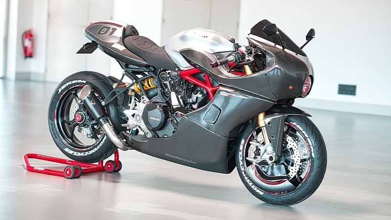 Мастер из Франции полностью преобразил Ducati SuperSport 950: теперь мотоцикл блистает карбоновыми элементами, улучшенной подвеской Ohlins и тормозами Brembo. Узнайте, как из стандартного спортбайка сделали стильный нео-ретро проект. В мире кастомных мотоциклов имя Jeremie Duchampt и его мастерская Jerem Motorcycles уже давно ассоциируются с высочайшим качеством и смелыми решениями. В этот раз французский мастер взялся за абсолютно новый Ducati SuperSport 950, чтобы создать не просто очередной проект, а настоящий нео-ретро спортбайк с акцентом на карбон и современные технологии. В качестве донора был выбран свежий Ducati SuperSport 950 с двигателем Testastretta 11° L-twin объемом 937 см³, выдающим 110 л.с. при 9000 об/мин и 93 Н·м крутящего момента при 6500 об/мин. Уже в стоке этот мотоцикл отличается отличной управляемостью и динамикой, но Jeremie решил, что совершенству нет предела. Первым делом с мотоцикла сняли практически всю заводскую облицовку, включая вилку и задний амортизатор