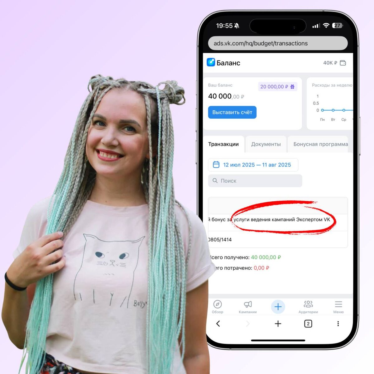 Сегодня начинаю работу в кабинете нового (старого 😊) клиента. Смогли активировать приветственный бонус от эксперта ВК рекламы — от меня — и провернули небольшую схему: на один ИНН получили бонус в двойном размере. 💰 Вносите 20 000 ₽ на рекламу 💰 Получаете ещё 20 000 ₽ от ВКонтакте 💙 Хотите запустить продвижение во ВКонтакте выгодно? Пишите — запустим с удвоенным бюджетом 💙 Как вам мой образ с косичками? Может, вернуть такой стиль?
