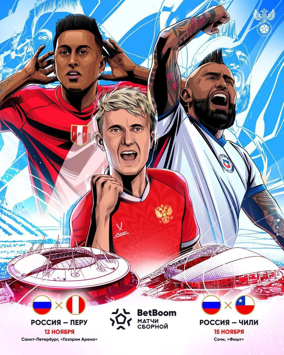La nazionale russa di calcio incontrerà a novembre le nazionali di Cile e Perù