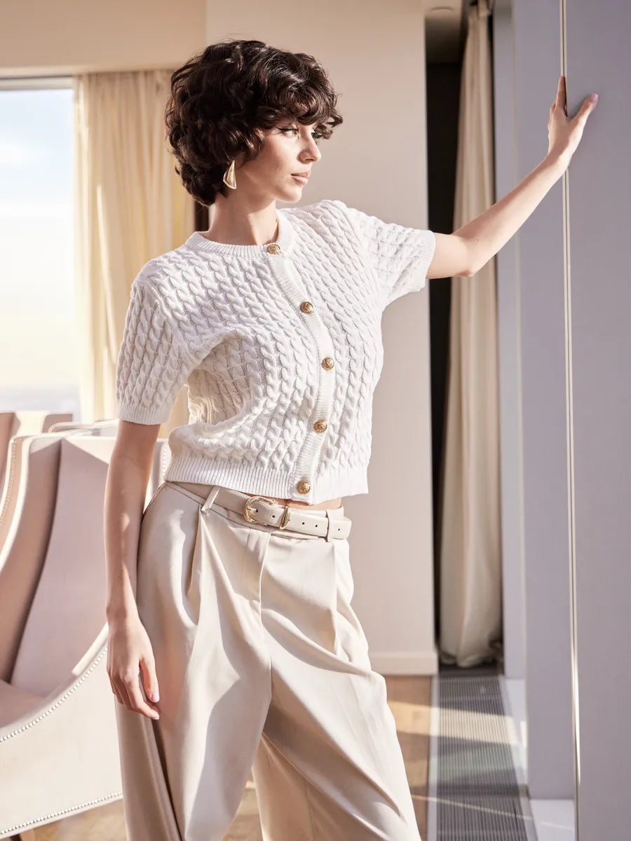 #Лето2025 #Кадиган Кардиган Вязанный укороченный кардиган на пуговицах. Отлично сочетается со всеми предметами гардероба. Классическая модель имеет застежку спереди, V-образный вырез с отсутствием воротника. ✍️ Артикул: 297729131 👌 Размеры: от 40 до 54 🔥 Купили более 300 раз! 👉Кардиган👈 _______ Как тебе❓ ❤️ / 💔 Топовый look с Wildberries 💶💵💴