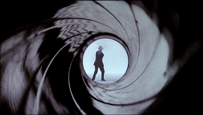 В 1962 году, когда снимали первый фильм о Джеймсе Бонде — «Доктор Но», компьютерной графики ещё не было. Всё делалось по-настоящему, без спецэффектов. Поэтому создателям приходилось искать нестандартные решения, чтобы сделать заставку запоминающейся и эффектной. И заставка действительно стала легендарной: силуэт человека в шляпе, видимый через дуло пистолета, резкий поворот, выхват оружия — и в следующий миг экран окрашивается в красный цвет. Эта идея принадлежит Морису Байндеру — мастеру создания титров. Интересно, что идея появилась у него буквально накануне встречи с продюсером фильма. Съемки проходили через дуло настоящего револьвера. Вот только какой именно? Судя по нарезам в стволе, определить сложно, если не быть экспертом. Долгое время считалось, что использовался револьвер калибра .38 (по-русски — около 9,1 мм). Однако один из участников съёмочной группы утверждал, что это был знаменитый Кольт .45 (М1911) — пистолет калибра 11,51 мм, известный среди американских военных. Втор