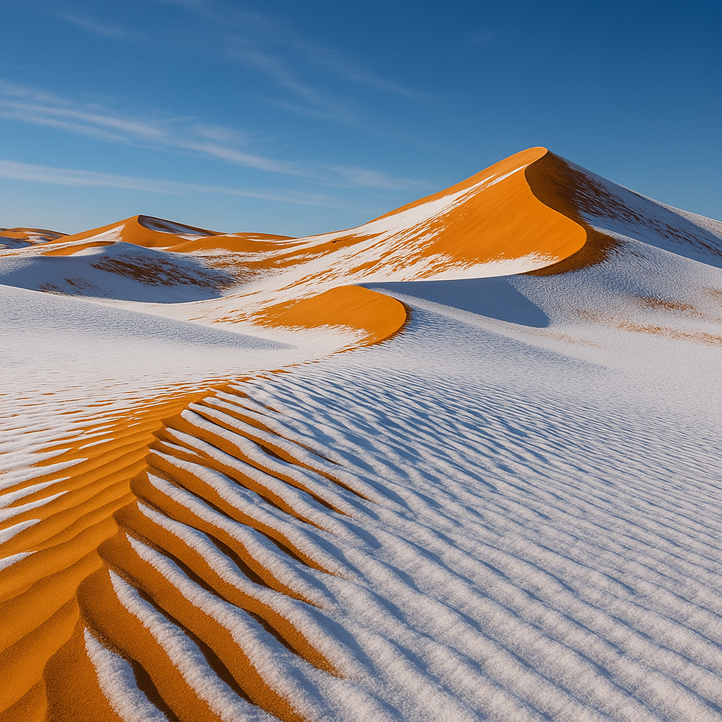 Это звучит как сюжет фантастического фильма, но такие события реально происходят — причём не только в горах, а прямо на песчаных дюнах. Давайте разберёмся, как и почему в пустынях может появиться снег, откуда он берётся и какие удивительные аномалии климата этому способствуют.