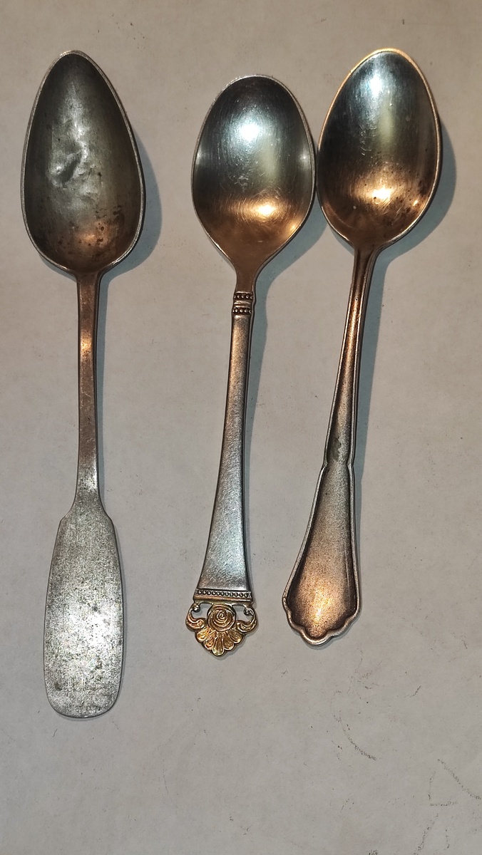 Три германский чайных ложки... Накатка золотой фольгой... Дорого и богато... :0) Амстердам: Стра мельниц: одна лопасть утеряна, зато крутится... Какая-то старина, судя по клймам... Большие столовые. Не знаю, как правильно смотреть на пробу... Слышал, что есть в Мексике дорогие столовые приборы 999 пробы... А вдруг? А может это для специальных Черных месс: 666 проба? А этой может, Наполеон вароний суп ел? Дикие люди... Вилка со странностями: "Не только сильвер, но и стерлинг"! :0))) Иностранные изделия! И побила же их жизнь... :0) Просто бери любой предмет и сказку про него сочиняй, как Г.-Х. Андерсен... "Эх, и угораздило же меня с моим..." (Пушкин) "... а не в Дании" (я) Случайно на ноже карманном