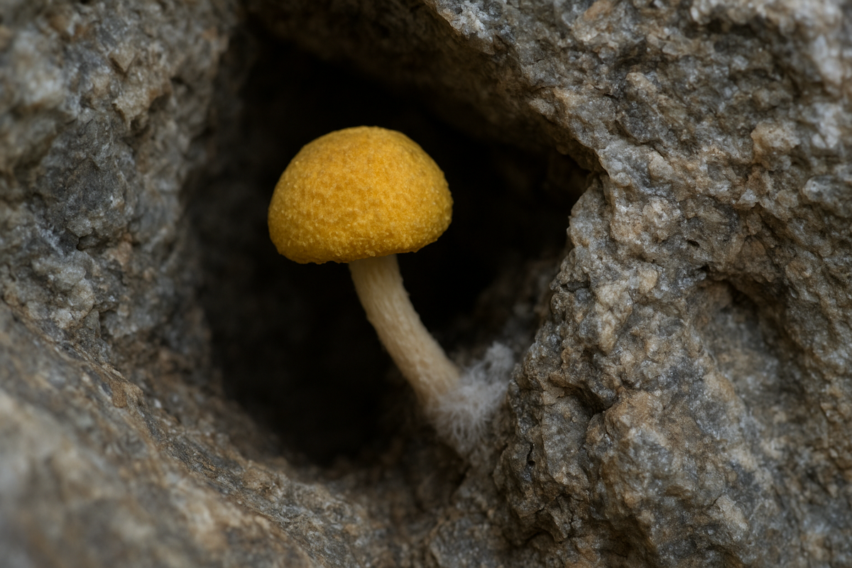 На первый взгляд, камень кажется символом абсолютной неподвижности и вечности. Его кристаллическая структура, плотность и холодная поверхность вряд ли вызывают ассоциации с жизнью. Однако реальность удивительнее: учёные обнаружили грибы, которые обитают внутри камней - в их порах, трещинах и даже в кристаллической решётке минералов. Эти микроскопические организмы принадлежат к особой группе эндолитных грибов и демонстрируют невероятную приспособляемость к экстремальным условиям. Микроскопические шахтёры: Эндолитные грибы заселяют микротрещины горных пород, куда не проникает солнечный свет, а температура и влажность могут колебаться от экстремальной жары до глубокого холода. В таких условиях растения существовать не могут, а грибы находят способы не только выживать, но и медленно «разрабатывать» минеральную породу. Их тончайшие гифы внедряются в микропоры камня, проникая всё глубже. Питание этих организмов часто связано с микроскопическими следами органики, оставшейся от древнейших форм