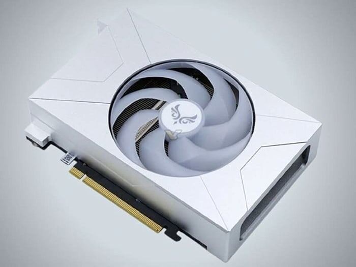 RTX 5060 Ti Sakura Snow X выполнена в форм-факторе ITX, что делает её отличным выбором для компактных ПК. Несмотря на размеры, система охлаждения включает радиатор с несколькими тепловыми трубками и один полупрозрачный вентилятор, рассчитанный на отвод до 170 Вт тепла.
