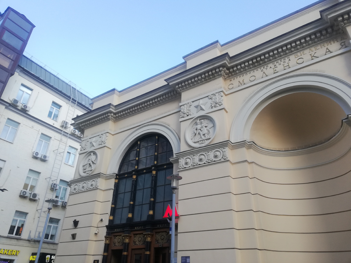 Началась наша прогулка у станции метро "Смоленская", где нам поведали историю ее создания. Не буду вдаваться в подробности, в Интернете об этом много информации.