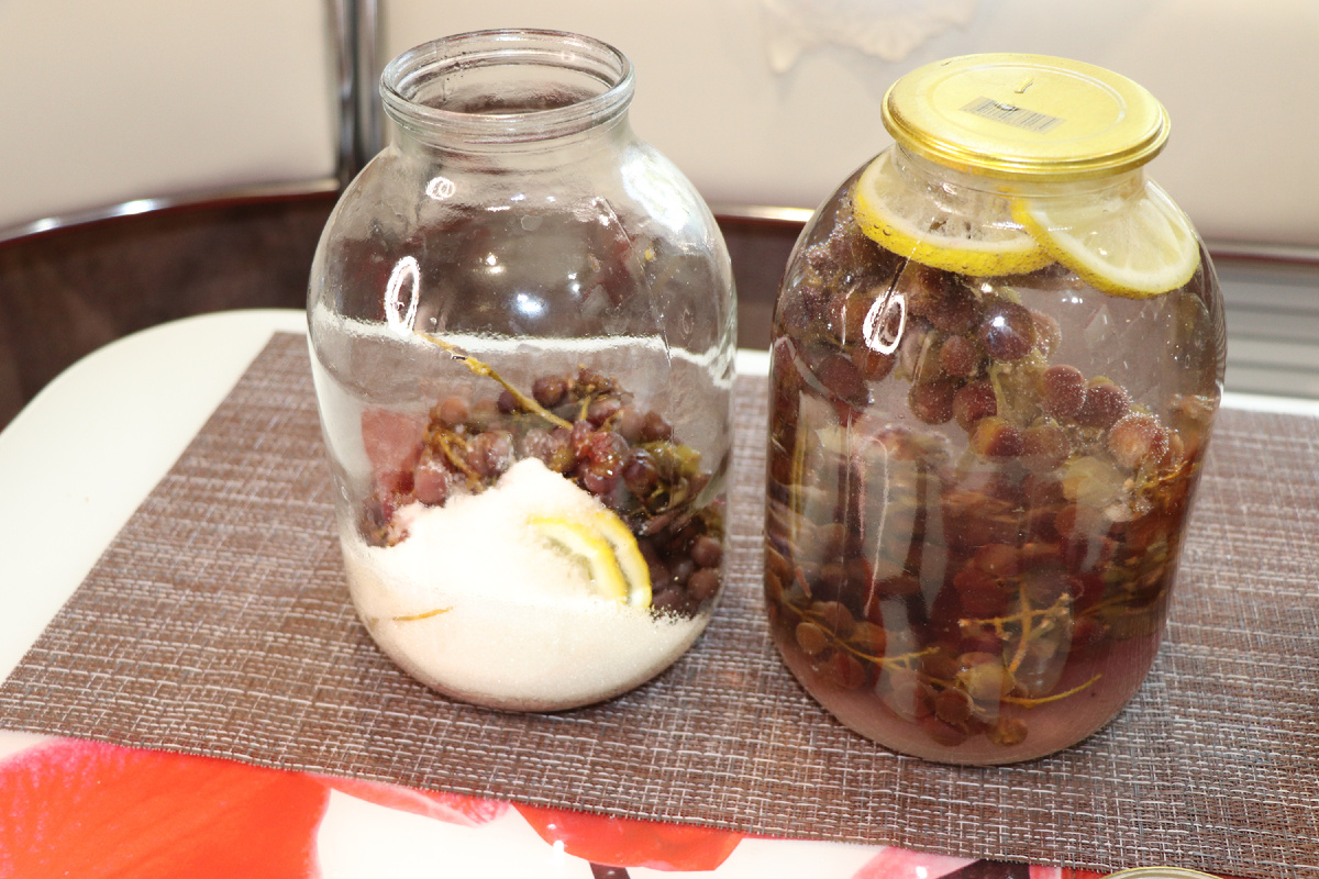 Компот из винограда с лимоном в трехлитровых банках на зиму