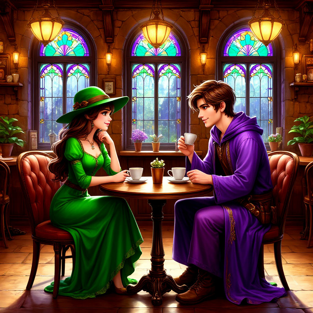 Мы устроились у окна, где свет сквозь витраж рисовал на столе причудливые узоры. Генри заказал нам две чашки «Лунного Мрака» — чёрный кофе с пенкой, мерцающей, как звёздное небо. Здесь всё было лунным, мерцающим, и одновременно теплым и уютным. Карамельные звездочки — мелкую посыпку подали в хрустальной сахарнице.