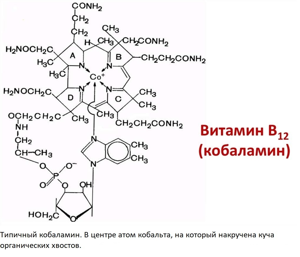 Братишка, я тебе витаминов принёс! Скажи Пахом эту фразу - и сцена имела бы смысл, но обо всем по порядку. Среди великого множества витаминов есть один с труднопроизносимым названием. Цианокобаламин, он же, в простонародье, витамин B12. Вообще кобаламинов, которые все являются витаминами B12, довольно много, они взаимозаменяемы, поэтому дальше буду называть его просто B12. С точки зрения химии он представляет из себя атом кобальта (металл такой), на который как на центральную ось насажена молекула циклического углеводорода (Господи, хотел же без химико-специфического), на которой болтаются различные хвосты. Ближайшей аналогией будет обычная карусель, на которой любой из нас катался в махровом детстве. Хвосты у данной молекулы могут быть самые разные, поэтому и кобаламинов множество, но организму, строго говоря, всё равно, какой употреблять, в хозяйстве всё пригодится. Так вот, данный витамин играет огромную роль в метаболизме животных. Конкретно в организме человека он участвует п
