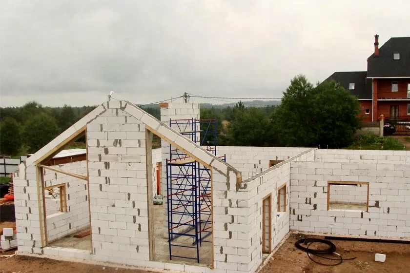 Знакомый в прошлом году планировал дом 8×10 из газобетона.
