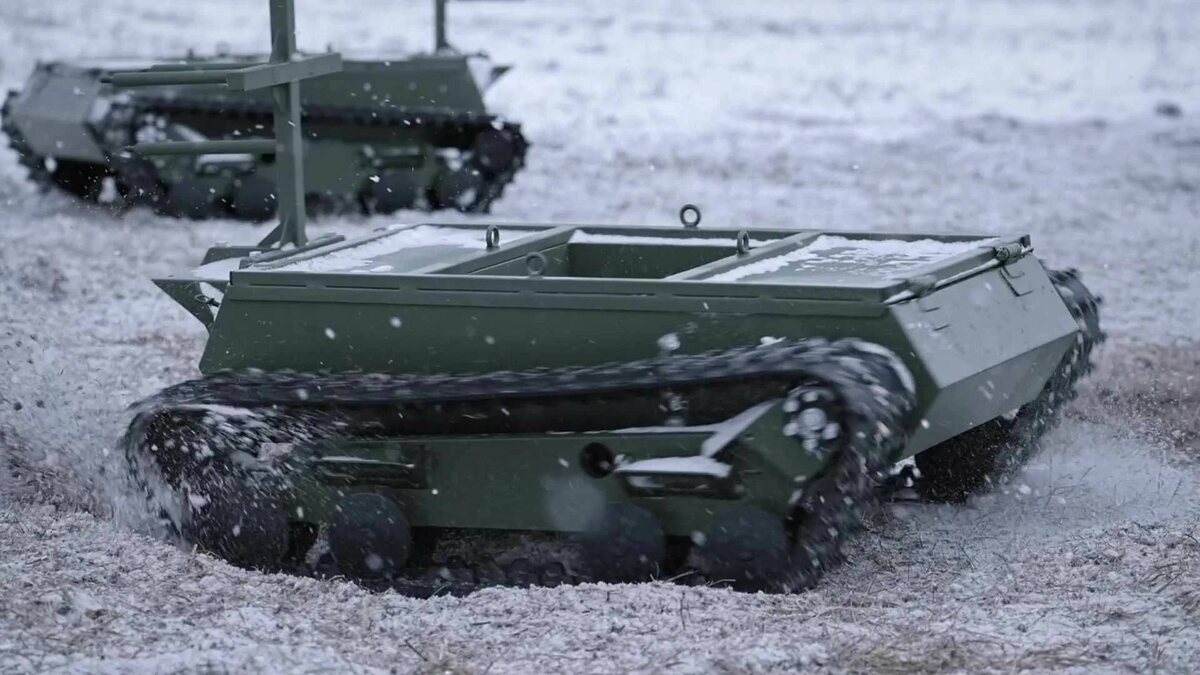 Ростех поставил военным роботы «Депеша». Данная платформа может доставлять груз массой 100 кг и способна развивать скорость до 15 км/ч. Комплекс изготовлен из прочных и легких материалов, что обеспечивает возможность преодолевать различные препятствия. Управлять «Депешей» можно при помощи пульта — видеоизображение поступает на VR-очки или монитор оператора.