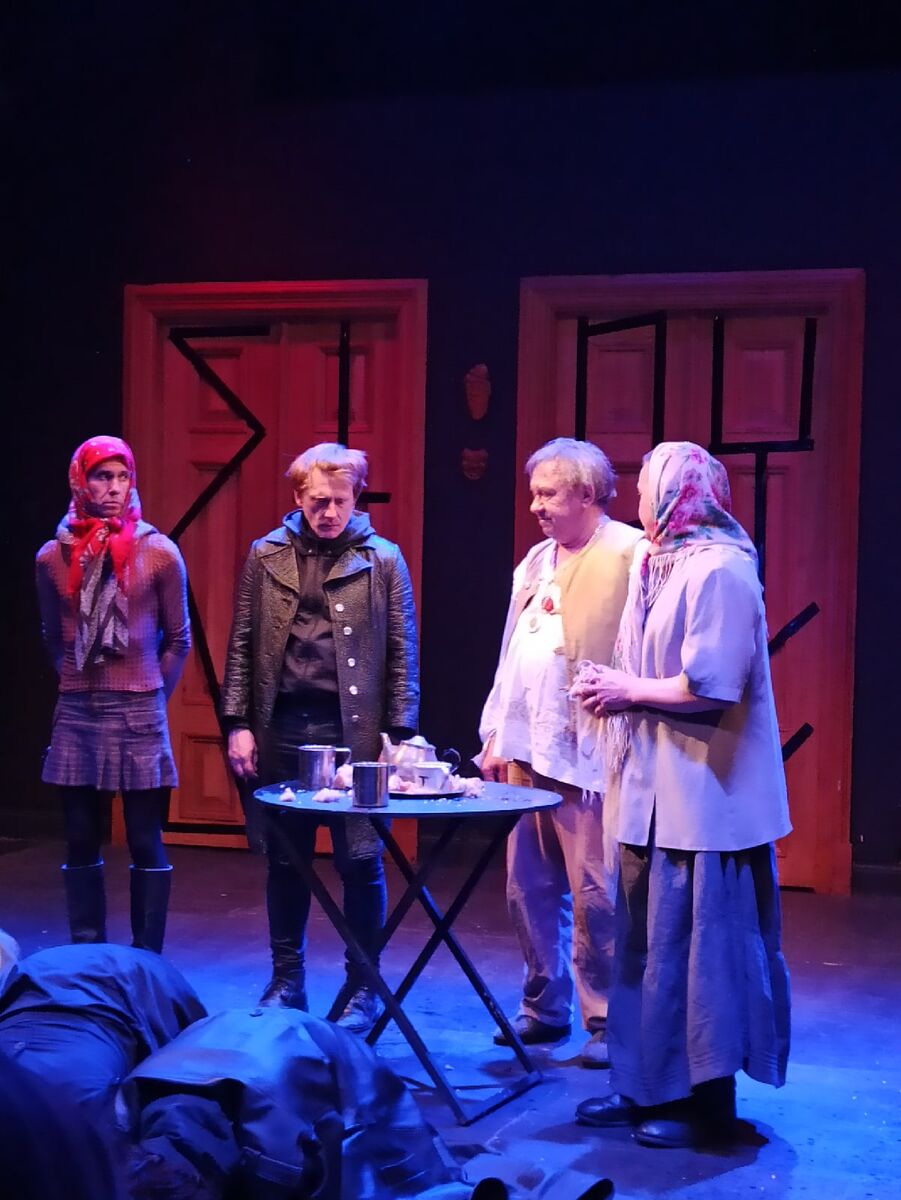 В "Коляда-театре" спектакль "Концлагеристы". В зале был аншлаг, любит его публика. На сцене - прекрасные артисты Сергей Фёдоров (Федот), Антон Макушин (Педрос), Олег Ягодин (Сталкер), Александр Кучик (Степан, начальник лагеря). Их безусловный и мощный артистический талант позволяет спектаклю пройти по тонкой грани социальной антиутопии, не накреняясь сильно ни в трагедию (а можно было, особенно когда Федот оплакивает "дочь', пусть и не настоящую, назначенную, да и вообще это парень), ни в зубоскальство (поводов предостаточно, как и возможностей загубить основную мысль автора).