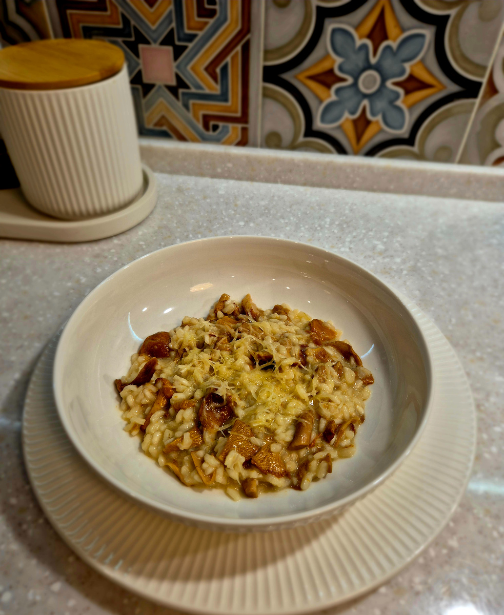 Друзья, всем привет. Лето в разгаре, а значит и сезон лисичек в разгаре! Для меня лисички обязательный атрибут вкусных летних застолий) готовлю их в разных вариациях, хотя бы раз за сезон делаю лисички в сметане, это, конечно, классика и, конечно, безумно вкусная. Но все-таки хочется и некоторых новшест. И сегодня предлагаю приготовить ризотто с лисичками. Вариант простой и вкусный) Многие боятся пробовать приготовить ризотто, считая, что это очень сложно, но, поверьте, ничего сложного нет, единственное, что нельзя особо отходить, потому что надо постоянно подливать бульон и следить за консистенцией, но на это потребуется всего-то 20-25 минут, зато какой роскошный ужин у вас получится! По моему оно того стоит))) Лисички вымыть и нарезать при необходимости на более мелкие фрагменты. Сыр натереть на мелкой терке. Бульон подогреть, он должен быть доведен практически до кипения. И в таком состоянии его надо остановить на небольшом огне, в процессе всей готовки бульон должен