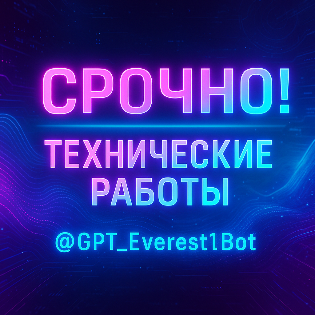 Бот @GPT_Everest1Bot временно недоступен — мы готовим мощное обновление! Всего за 2 дня (до 14 августа) мы: • Исправим все баги 🛠 • Сделаем интерфейс быстрее и удобнее ⚡️ • Повысим стабильность и скорость работы 🚀 🔜 Совсем скоро вы получите новый опыт общения с ботом — не пропустите! ❤️