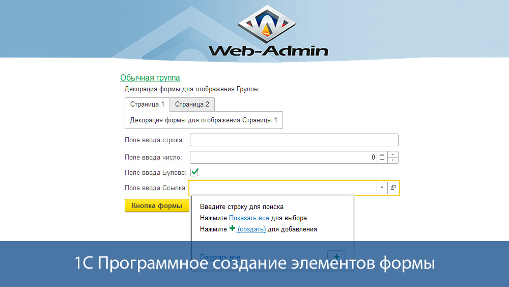 Одной из самых частых задач для 1С Программиста является модификация формы в стандартных конфигурациях, которые находятся на поддержке. И в этом случае элементы формы необходимо создавать только программным способом. Любое изменение форм в конфигурации, находящейся на поддержке, делается только в расширении конфигурации, что бы оставалась возможность автоматического обновления конфигурации. Вручную в конструкторе форм этого делать нельзя, так как при обновлении конфигурации все наработки могут слететь и по этой причине все новые элементы формы добавляются программным способом. Для добавления элемента на форму необходимо программным способом повторить процедуру добавления элемента в конструкторе формы. Т.е. если для поля ввода сначала необходимо создать реквизит формы, а потом добавить элемент формы, то и с помощью программного кода сначала необходимо создать реквизит формы, а уже потом добавлять элемент формы. В данной публикации рассмотрены только простые элементы формы, которые можно