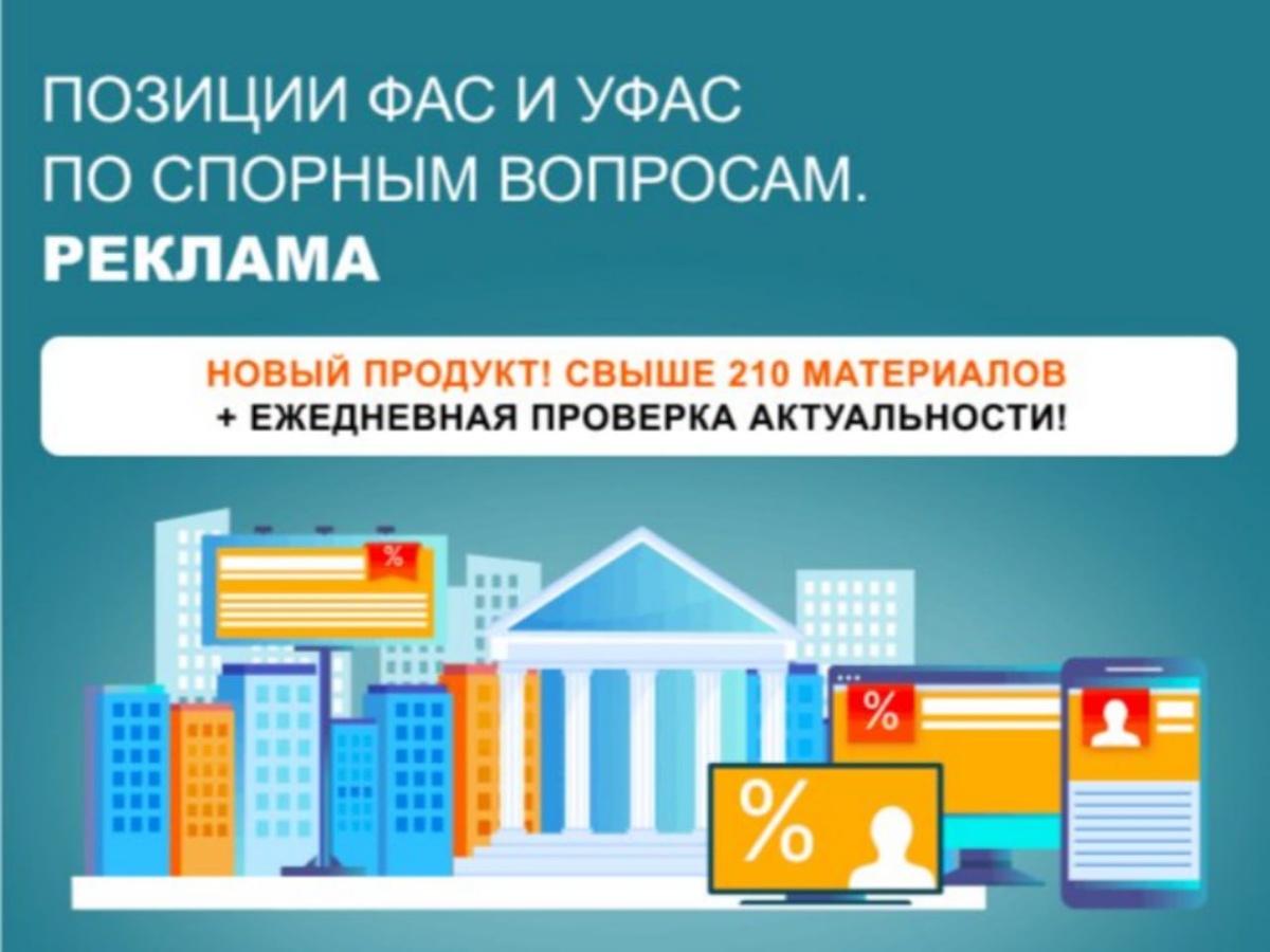 ❗️Соблюдайте рекламное законодательство без лишних рисков! Сфера рекламы растет, но вместе с ней растут и штрафы. В 2024 году общая сумма штрафов, связанных с рекламой, превысила 160 млн. рублей. Это реальная угроза для бизнеса — не только финансовая, но и репутационная. Чтобы избежать неприятностей, важно учитывать нормы законодательства. ✔️Но где искать актуальную практику ФАС и УФАС? ✔️Как быстро разобраться в сложных документах? ✔️Как сэкономить время и избежать ошибок? Новые Позиции ФАС и УФАС по спорным вопросам — ваш надежный инструмент! Подробнее Заказать бесплатный доступ ✔️Сэкономьте время— мы уже собрали и систематизировали актуальную практику, чтобы вы не тратили часы на поиск. ✔️Снизьте риски — избежите штрафов и споров с антимонопольными органами. ✔️Получите актуальные решения — включая те, что не дошли до суда и остаются вне внимания. ✔️Ориентируйтесь в сложностях — разберитесь в неочевидных рисках и подстрахуйте бизнес. Для кого это важно? Для компаний, работающи