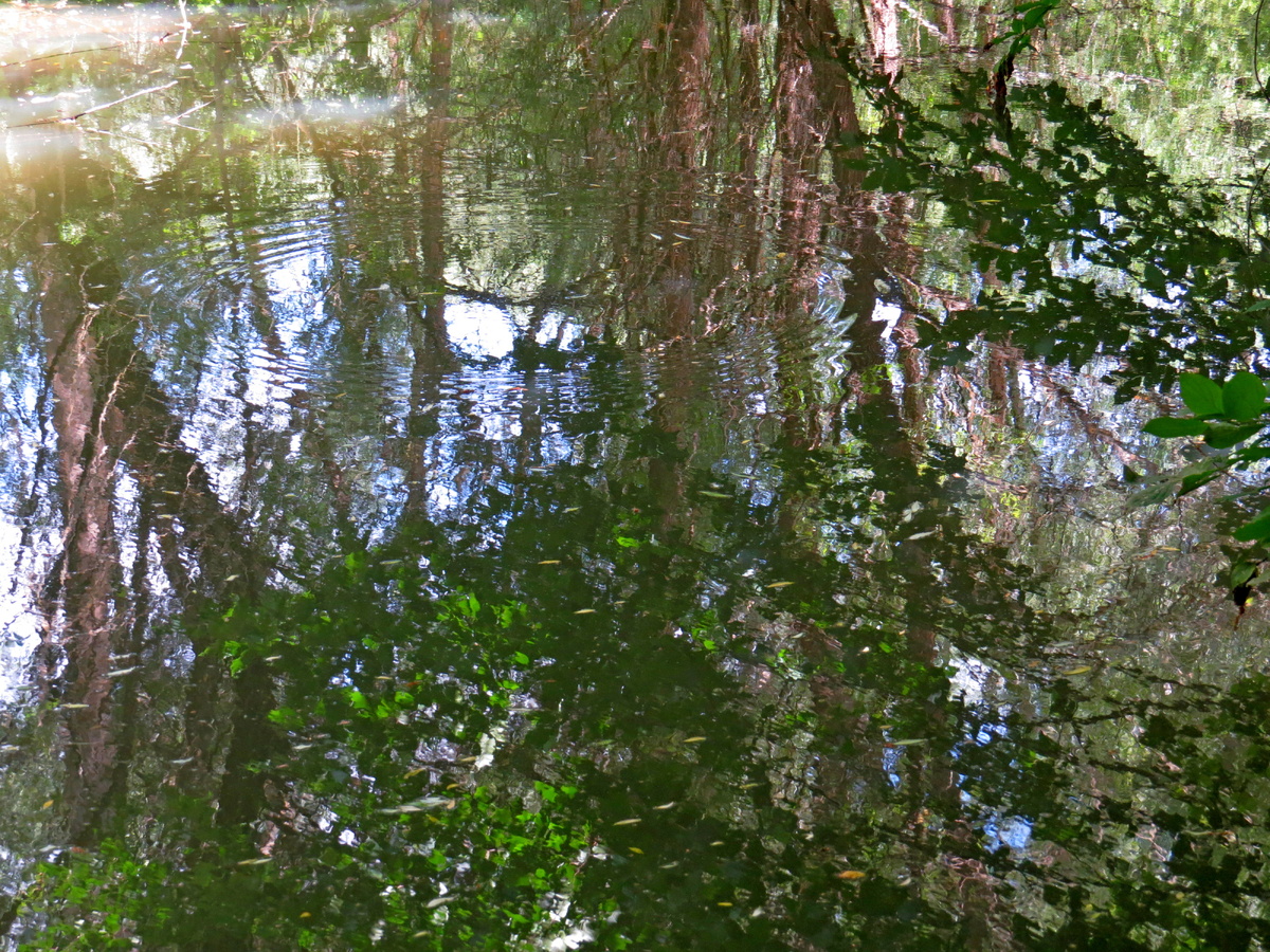 Ф-Фух! Вышли наконец-то на нормальную тропу вдоль берега. Сидите Кикиморы у себя в болоте! Оглянулась на заветную рощицу и мы пошли дальше. Как жаль, что ветер. Как жаль, что озеро не зеркальное. Зато какие расписные облачка раскиданы по небу! - Куда мы так бежим? А привал? А перекус? Не пойду дальше! мне нравится эта полянка! Наконец-то можно посидеть. Медленно жевать свой бутербродик, попивать чаек. Смотреть на стрекозу, притаившуюся на листике камыша. На травы, колышущиеся на ветру. Блаженство! Снова ныряем вместе с тропой в лес. Снова бежим. Ой! А вот уже и снова дамба! И по ту сторону стоит и ждет нас машинка. Оглянулась на дальние горы. Под ногами облака катаются на волнах. Шикарное место! Нет слов! Посмотрела на озеро с дамбы. Путь вокруг него составил 5 км. Так почему же нам рыбаки сказали, что дороги нет? Они были на машинах. И вокруг озера на машине не объедешь. Просто они нас не поняли. Очень хорошо, что мы их послушали! Начало прогулки: Аптекарская поляна. Вот это