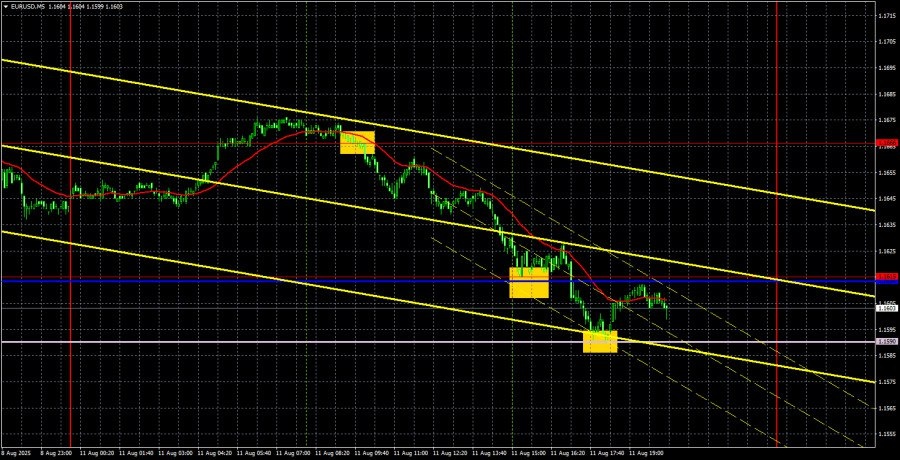 https://basechop.ru/wordpress/?p=53559 Анализ EUR/USD 5M. Валютная пара EUR/USD в течение понедельника показала нисходящее движение, но в целом торговалась примерно в том же диапазоне, что и в последние несколько дней. Европейская валюта росла в течение полутора недель, поэтому небольшая коррекция не помешает. Вчера макроэкономический фон отсутствовал, и даже новостей из Белого Дома не поступало. Рынок продолжает готовиться к сегодняшнему отчету по инфляции в США(который, по сути, никакого значения не имеет, но может спровоцировать сильную реакцию рынка) и ко встрече между лидерами США и России на Аляске в пятницу(которая может стать началом конца конфликта в Украине). Таким образом, вряд ли текущая неделя будет скучной. Мы по-прежнему не видим, по каким причинам доллар может показать среднесрочный рост. Что на часовом ТФ, что на дневном речь идет максимум о коррекции. На текущий момент преодоление линии Сенкоу Спан Б поменяет тенденцию на нисходящую, но для начала нужно, чтобы цена…