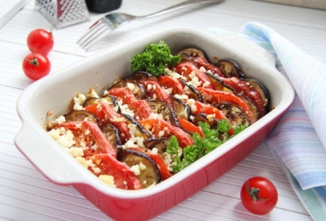 1. Как сделать запеканку из баклажан в духовке? Помидор вымойте, удалите плодоножку, разрезав его пополам.