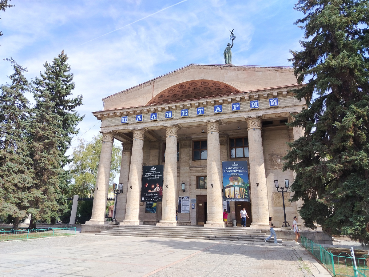 В планетарии я была очень давно, ещё в школьные годы, и не один раз. Помню, что мне там было очень интересно. Рассказывали про звёзды и созвездия. Потом, когда приезжала к бабусе в деревню, искала эти созвездия. Интересно было... Сейчас тоже хочется сходить, да всё никак. На территории планетария расположена астрономическая площадка. Она представляет собой часть парка с многочисленными деревьями, цветниками, газонами и клумбами. Здесь установлены астрономические приборы. Среди них такие древние как солнечные часы, армиллярная сфера, глобус Земли, солнечная установка. У наглядных пособий проходят беседы и экскурсии. По обеим сторонам легендарного волгоградского планетария, в небольшом тенистом скверике, расположены две интересные скульптуры на космическую тематику. Одна из них носит название «Познание мира». На небольшом пьедестале возвышаются две женские фигуры. Женщина держит корзину с фруктами. В руках же девочки учебные принадлежности — книга и циркуль. На другой стороне сквера ст