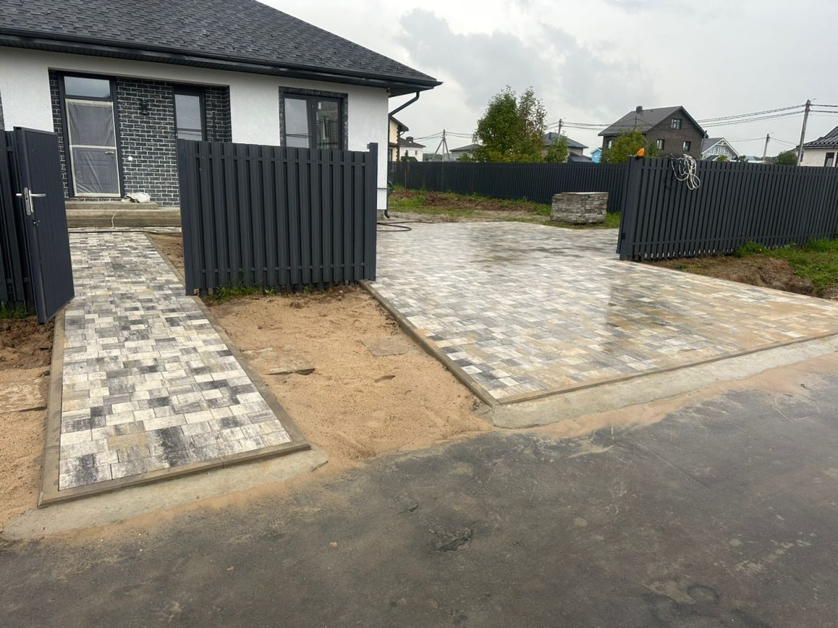 Отмостка и парковка из брусчатки, водоотведение. КП Большое Петровское. 👷♂️