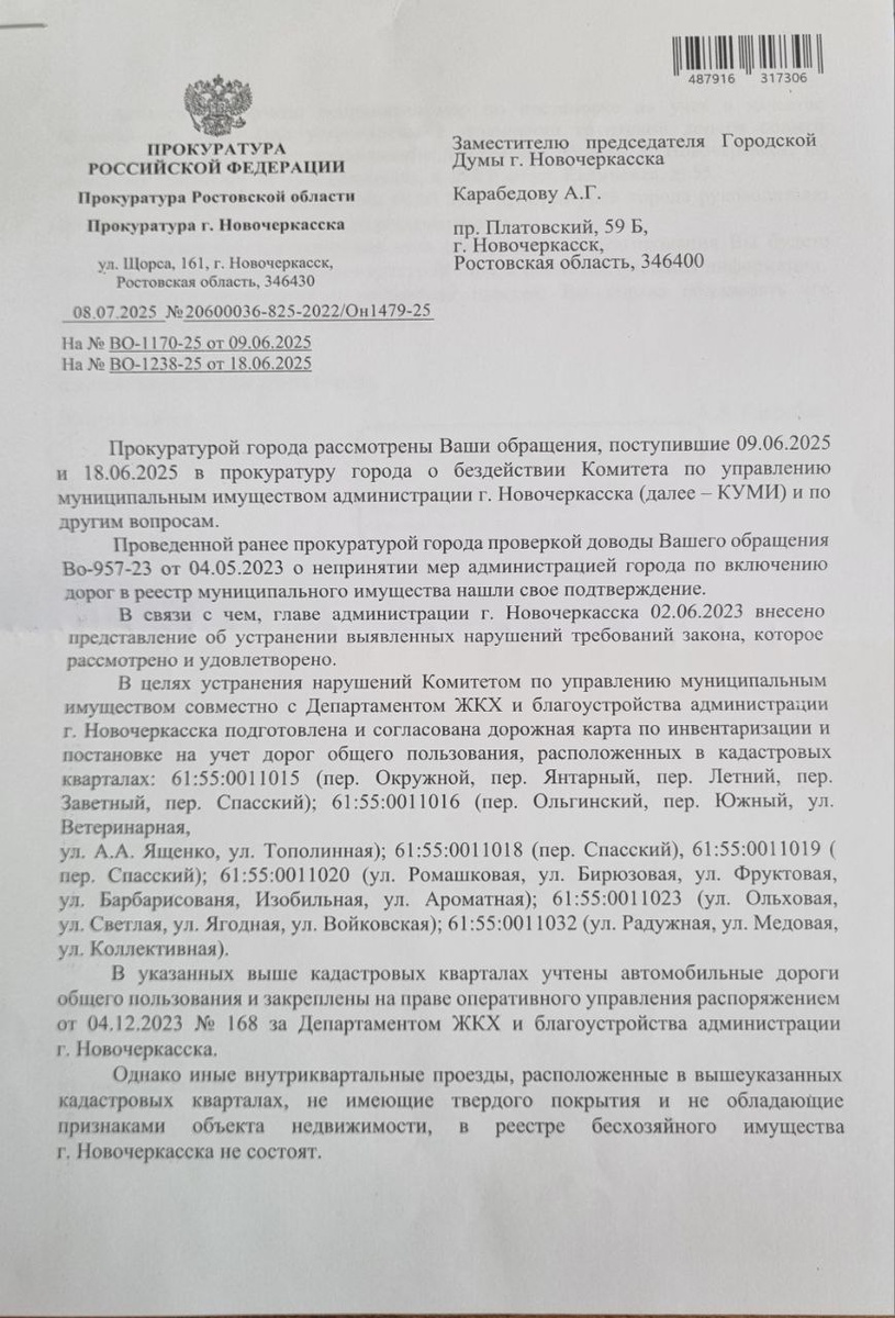 Это касается всех улиц, по которым у меня были обращения жителей. В ответе приводятся целые кадастровые кварталы.