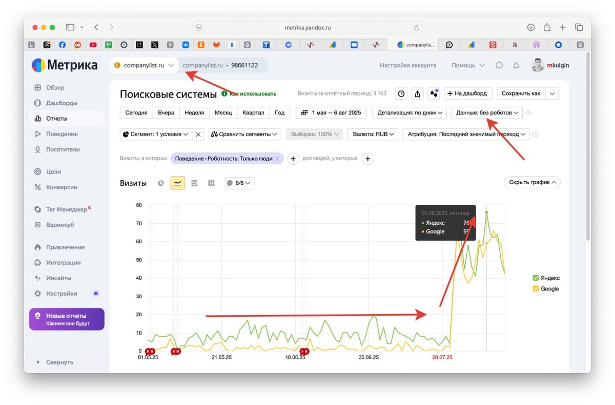 Блог стали вести и трафик на companylist.ru из поиска резко вырос. Других действий не делали вообще, а сам блог веду с помощью Gemini 2.5 Pro в режиме Deep Research... Темы блога - все вокруг баз компаний и холодных рассылок. Стараюсь делать 1 публикацию в неделю... Других объяснений нет и по датам похоже (пока там индексация дошла)... Причем рост как из Google, так и из Яндекса практически ровно. Аккуратный вывод? Ну блог помогает сайту, это точно. Ясно дело, что трафик может быть не совсем на 100% целевой, но он же бесплатный, да и сделок стало больше... Русский ИТ бизнес