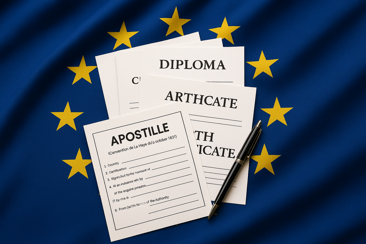 Многие страны Европейского союза являются участниками Гаагской конвенции 1961 года, которая упростила процедуру признания иностранных документов. Вместо длительной и сложной консульской легализации в этих странах достаточно поставить специальный штамп — апостиль. Но вот какие именно документы можно апостилировать, и какие нюансы стоит учитывать, знают не все. Разберёмся по порядку. Апостиль — это специальный штамп, подтверждающий подлинность подписи должностного лица на документе, его полномочий и печати организации, выдавшей документ. Он не подтверждает содержание, но делает документ юридически действительным в другой стране — участнице Конвенции. Например, если вы планируете учиться, работать или вступать в брак в одной из стран ЕС, документы из России (или другой страны, не входящей в ЕС) должны быть признаны там официально. Без апостиля они будут считаться «бумагой без юридической силы». В странах ЕС апостиль ставится на широкий перечень документов, но всё же есть определённые прав