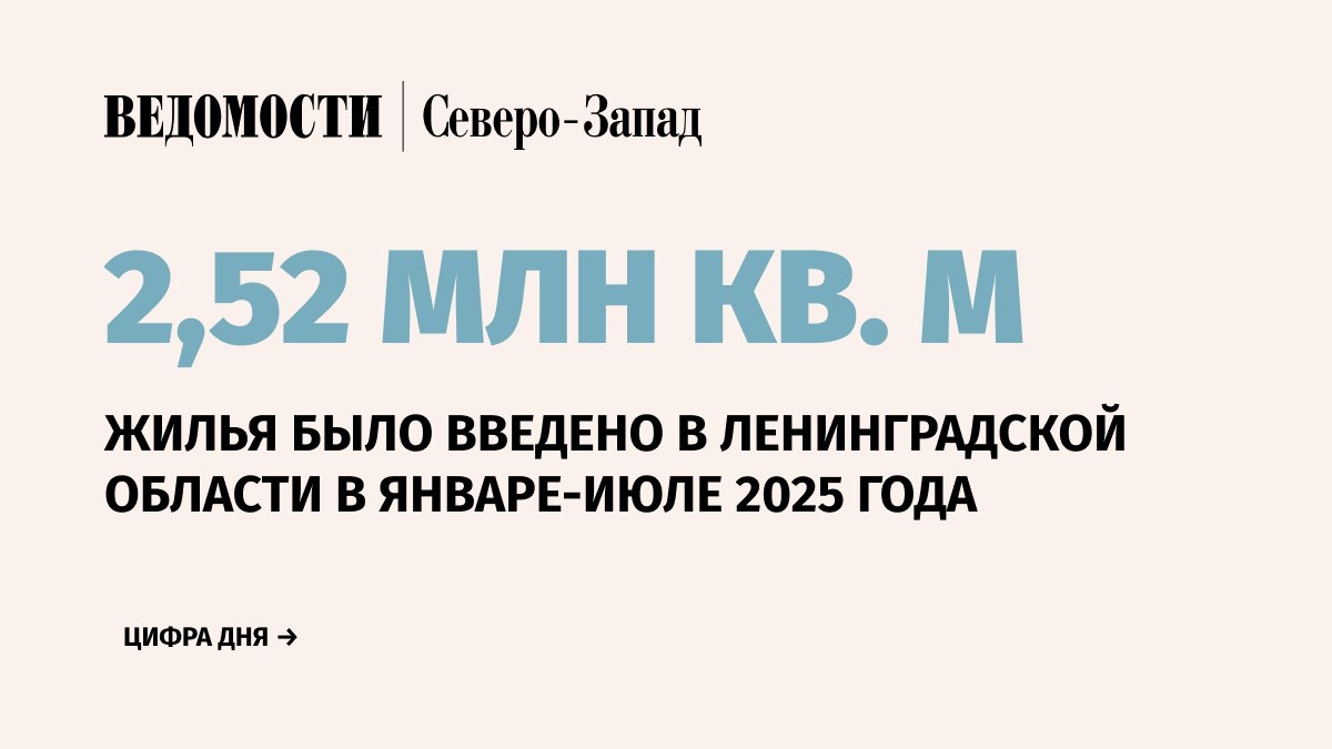 В Ленинградской области за январь-июль 2025 г. ввели 2,52 млн кв. м нового жилья. Это на 2% меньше, чем за аналогичный период 2024 г., когда было введено 2,58 млн кв. м., следует из данных комитета по строительству Ленобласти. ⚪️За семь месяцев текущего года в области на 11% по сравнению с аналогичным периодом 2024 г. вырос ввод индивидуального жилищного строительства (ИЖС), за этот период ввели 2,23 млн кв. м (в 2024 г. – 2,01 млн кв. м). При этом ввод многоквартирных домов (МКД) упал в два раза по сравнению с январем-июлем 2024 г. – с 0,58 млн кв. м. до 0,29 млн кв. м. ▶️Лидером по вводу жилья за семь месяцев стал Всеволожский район, где ввели 826 000 кв. м, в том числе 672 870 кв. м ИЖС. ▶️На втором месте – Ломоносовский район с введенными 467 788 кв. м, в том числе 347 980 кв. м ИЖС. ▶️Тройку замкнул Гатчинский район с 267 599 кв. м введенного жилья, среди которого 264 435 кв. м – ИЖС. 📰 Подпишитесь на «Ведомости Северо-Запад»