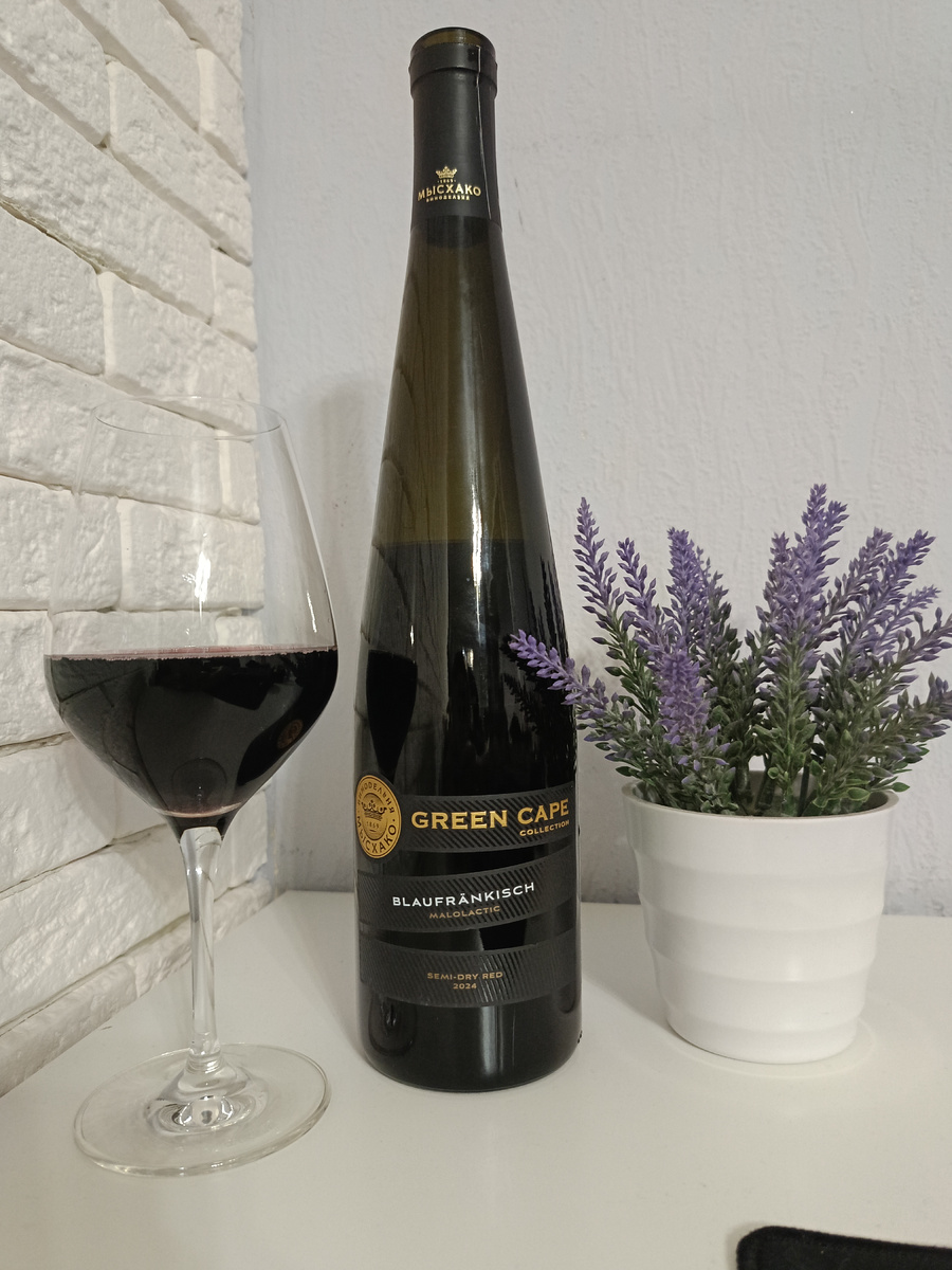 Экспериментирую с российским виноделием дальше. Обратил внимание на новый форм-фактор бутылки от винодельни Мысхако - сделали флейту. В неё, что логично, разлили австрийский сорт винограда Блауфранкиш. Конечно же пришлось покупать. Green Cape, Blaufrankisch malolactic, 2024. Название линейки в переводе означает Зелёный Мыс - отсылка к красотам природы, окружающей виноградники. Линейка новая, в 2025 появилась на полках. Удивила контрэтикетка - в составе виноград сорта Франковка (это один и тот же сорт винограда, но на фронтальной австрийское название, а на обороте сербское, быть может в реестре просто так значится). Так же интересно, что это ассамбляж двух лет урожая 23 и 24. Плюс очень высокая эффективность, аж в 15% (а мы помним, что у виноделов есть возможность указывать алкоголь с расхождением в 0,5%, чем они и пользуются, указывая меньше). Ещё и остаточный сахар - вино полусухое. Что в бокале? Концентрированные черные ягоды вперемешку с кофе, черемуха и черный перец. На глотке