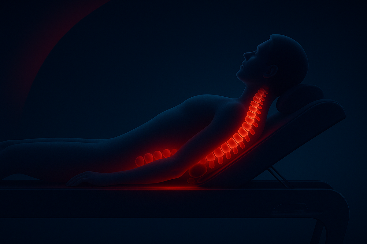 Массажная кровать Ceragem Master V4 даёт направленный прогрев и мягкий роликовый массаж вдоль позвоночника. Это идеальный «первый шаг» перед вашей «десяткой»: мышцы отпускают, диапазон движений увеличивается, а голова — наконец-то выдыхает. Плюс это проще, чем убеждать себя на часовой спортзал после тяжёлого дня.