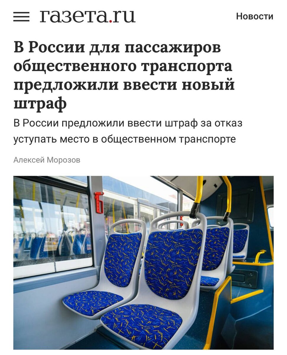 Нужно ли штрафовать за неуступчивость? 🤔 В России предложили ввести штрафы для пассажиров, которые не уступают места в общественном транспорте нуждающимся. Как вы к этому относитесь?