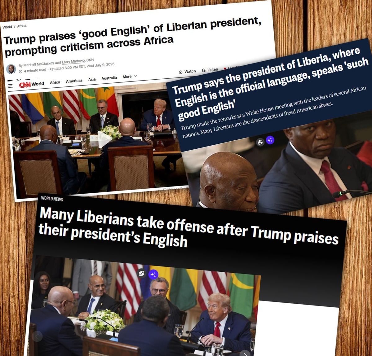 Обиделся на то, что его английский похвалили. Бывает ли такое? Да, вот случилось. Если вы президент страны, в которой единственный официальный язык – английский, получить такой комплимент неожиданно. Недавно Дональд Трамп вновь удивил мир своей непосредственностью. На приёме африканских лидеров он с искренним удивлением похвалил президента Либерии Джозефа Боакаи (Joseph Boakai) за прекрасный английский. Мол, "Such good English, where did you learn to speak so beautifully?" - и это не шутка, а цитата с переговоров. 🇱🇷 Коротко о Либерии: в XIX в. сюда переселяли освобождённых американских рабов, и страна с самого начала строилась по образцу США. Флаг - почти как у «старшего брата», конституция - калька с американской, а официальный язык, внимание, - английский. Причём не какой-нибудь, а самый что ни на есть официальный, государственный, на котором ведутся все дела, учат в школах и спорят на кухнях. 😱 Вот и выходит, что удивляться хорошему английскому у президента Либерии - примерн