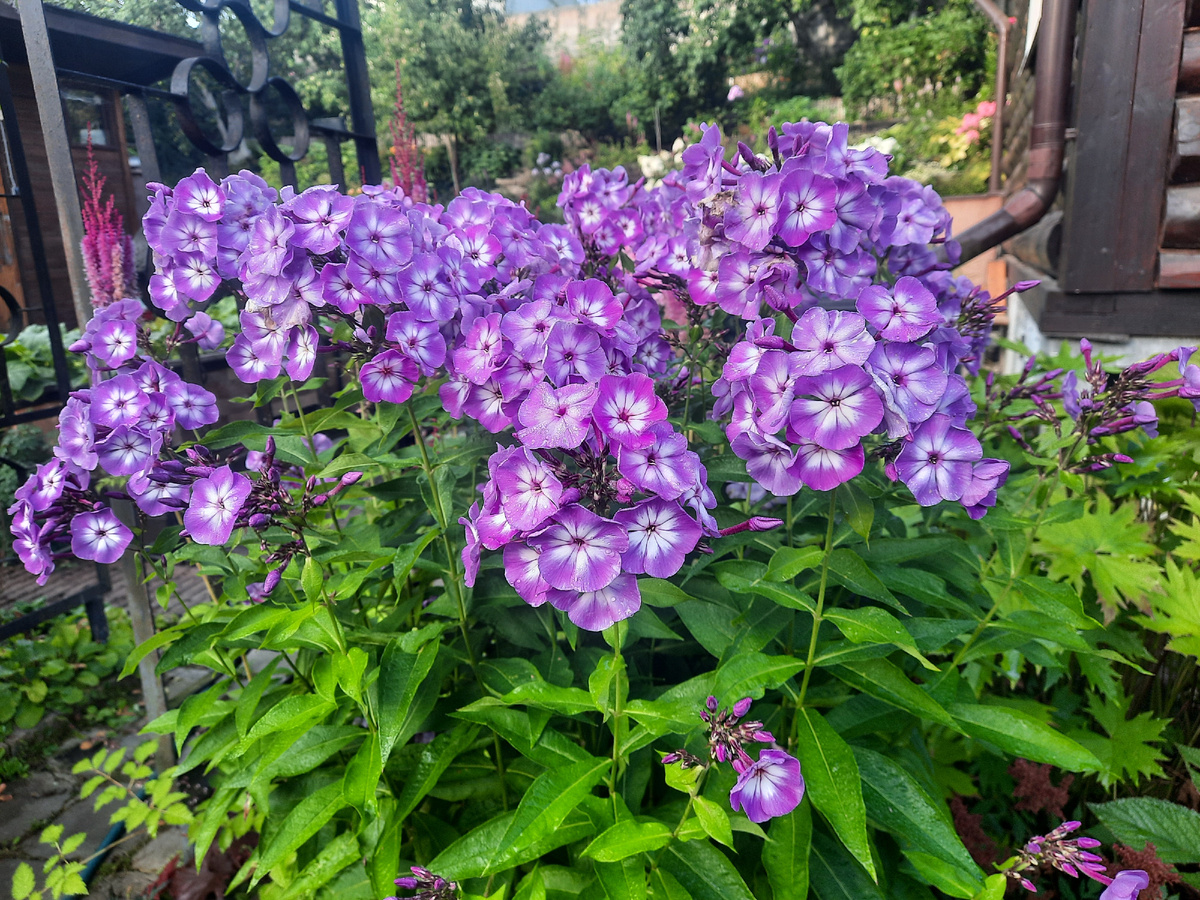 Около куста смородины еще один розовый флокс. Они все разной степени розовости. И тоже белый!