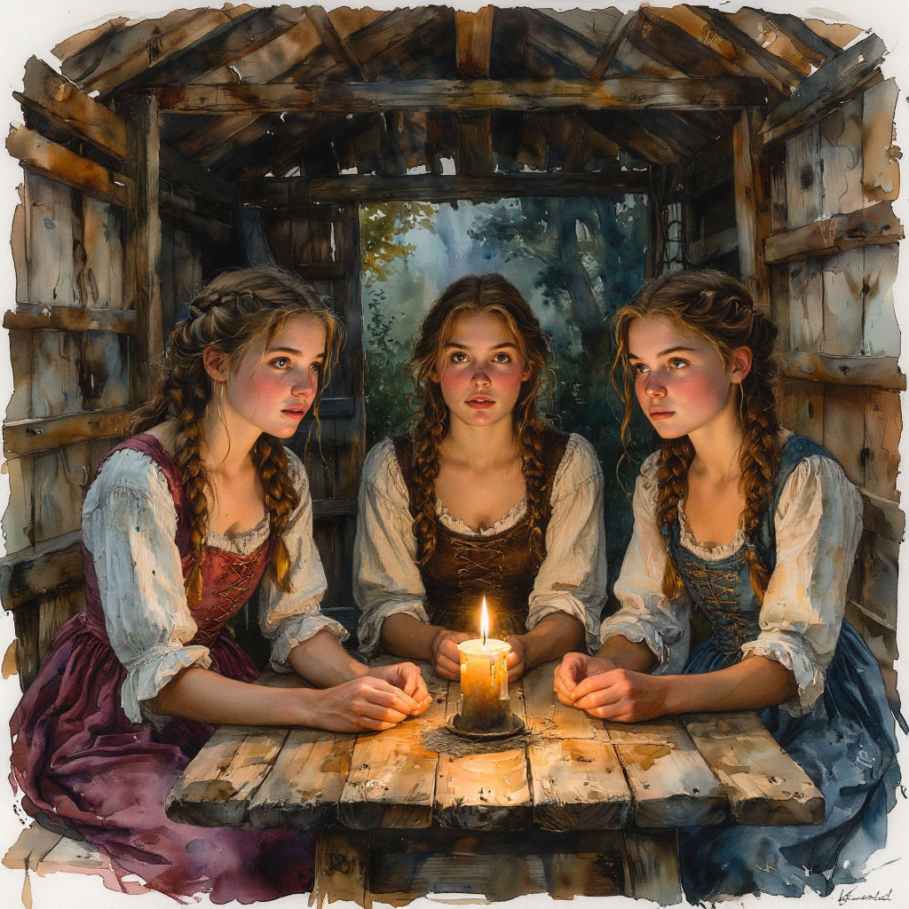 Аня решила начать с гадания на воске. Она осторожно расплавила свечу и капала горячий воск в таз с холодной водой. Фигурки, которые появились на поверхности, она внимательно рассмотрела — увидела очертания птицы, что сулило удачу и долгие путешествия. «Скоро один из нас отправится далеко и принесёт весть», — сказала Аня, улыбаясь.