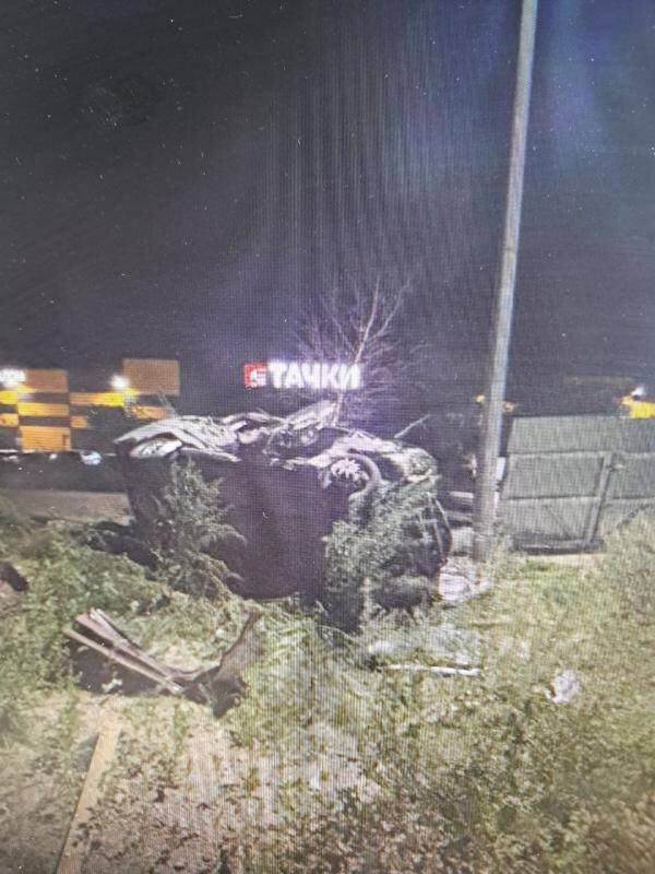 Автомобиль «Ниссан Серена» врезался в препятствие и перевернулся.
