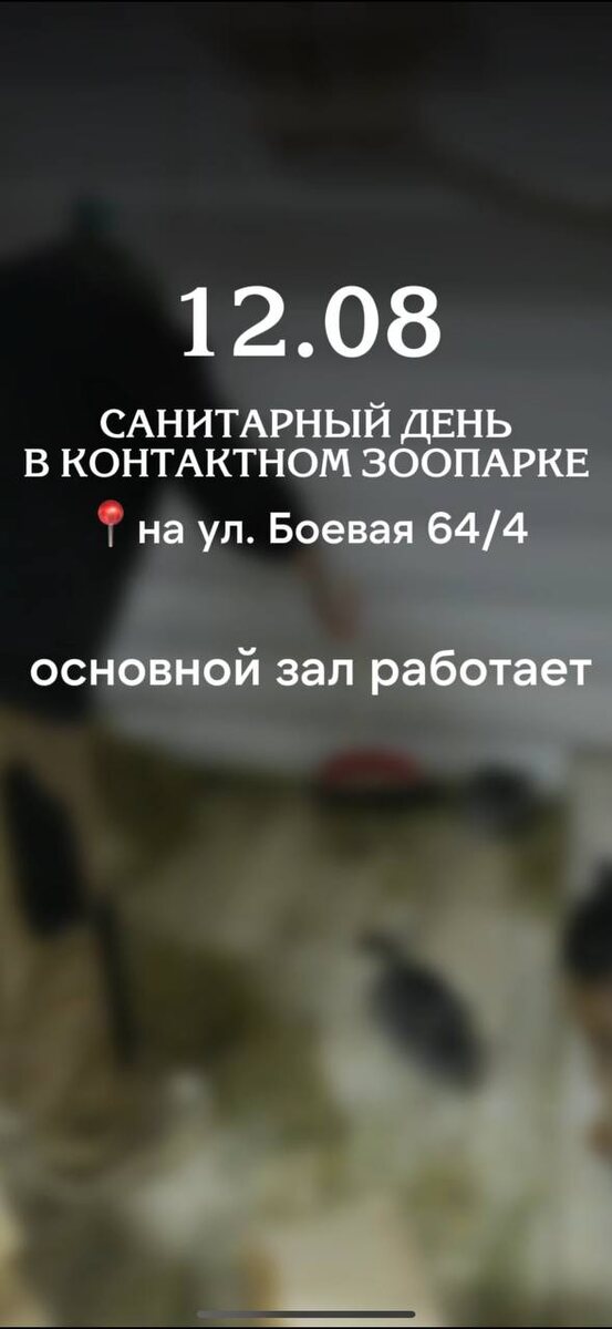 В нашем контактном зоопарке по адресу Боевая 64/4 сегодня 12.08. проходит санитарный день! 🫧🧼