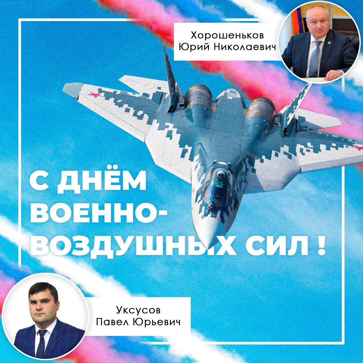 Уважаемые земляки, сердечно поздравляем вас с Днём Военно-воздушных сил России! В этот день мы отмечаем мужество, отвагу, самоотверженность и профессионализм наших защитников, несущих ответственность за безопасность страны в воздушном пространстве, за мирное небо над головами соотечественников. Ваше служение – пример верности долгу, высочайшего мастерства и преданности Родине. Особые слова благодарности – офицерам, которые сегодня выполняют задачи в зоне специальной военной операции, а также ветеранам Военно-воздушных сил, которые своим богатым опытом и мудростью вдохновляют молодое поколение защитников. Желаем вам крепкого здоровья, неугасаемой силы духа, благополучия и новых успехов в важной и ответственной службе! Ю.Н. ХОРОШЕНЬКОВ, глава городского округа город Урюпинск, П.Ю. Уксусов председатель Урюпинской городской думы