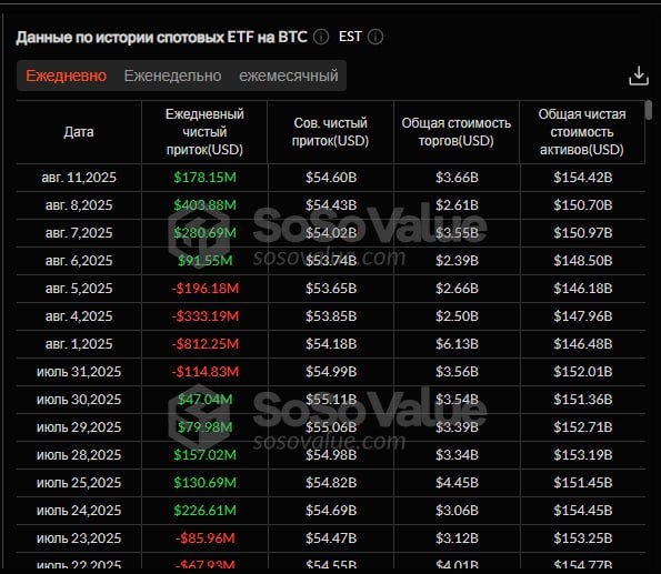 πΈ11 Π°Π²Π³ΡΡΡΠ° ΡΠΏΠΎΡΠΎΠ²ΡΠ΅ Π±ΠΈΡΠΊΠΎΠΈΠ½-ETF Π½Π° Bitcoin Π·Π°ΡΠΈΠΊΡΠΈΡΠΎΠ²Π°Π»ΠΈ ΡΠΈΡΡΡΠΉ ΠΏΡΠΈΡΠΎΠΊ Π² $178 ΠΌΠ»Π½, ΠΈΠ· ΠΊΠΎΡΠΎΡΡΡ