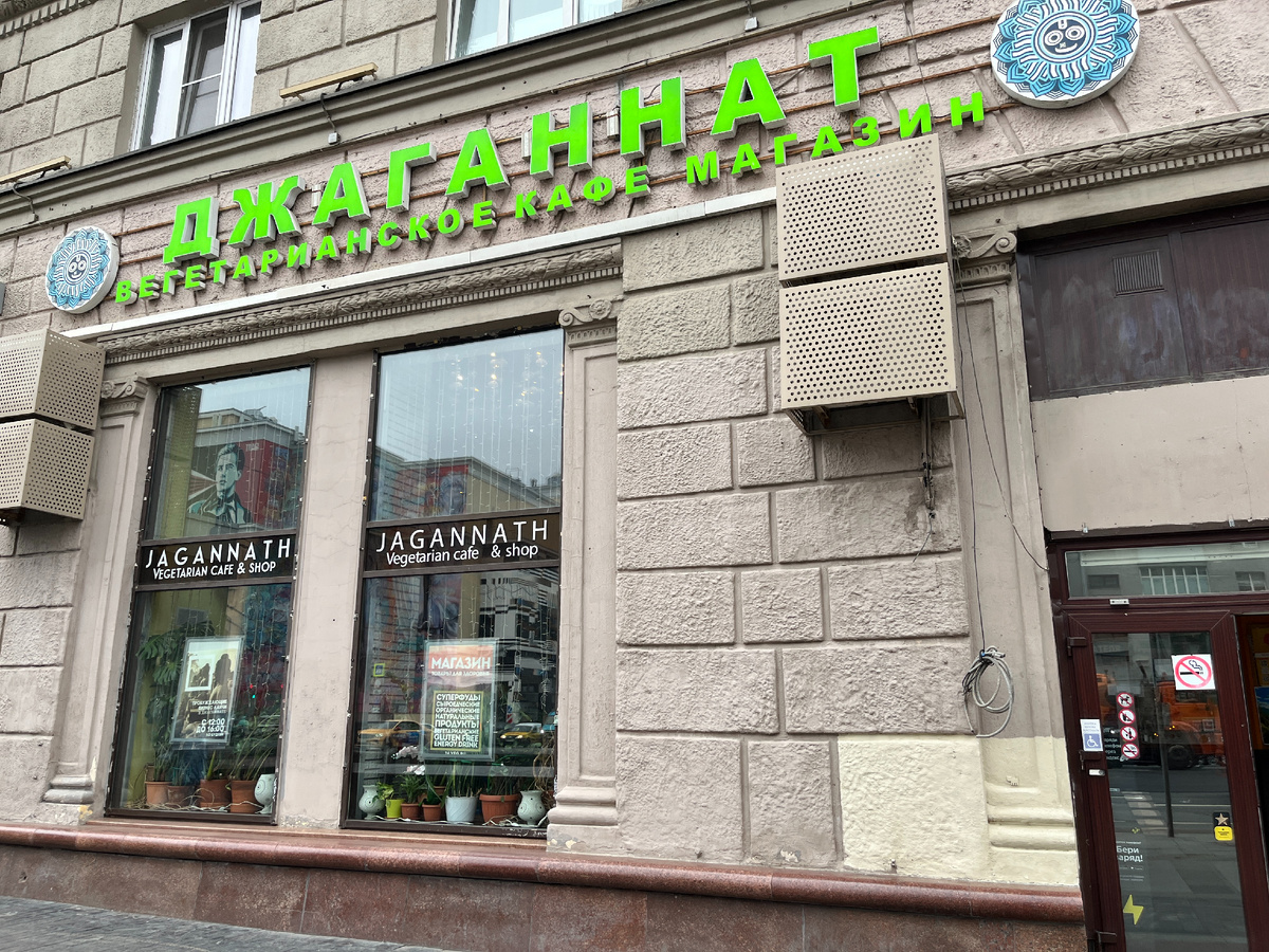 Спуститесь в подземный переход под Садовым кольцом и перейдите на другую сторону Земляного вала. Там вы увидите вывеску «Джаганнат» – вегетарианское кафе и магазин экзотических товаров.