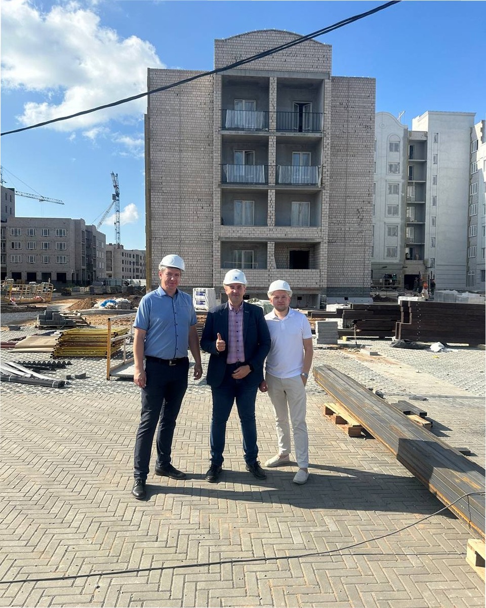 В ходе запланированной встречи с кировским девелопером «Железно», входящим в ТОП‑5 российских застройщиков по потребительским характеристикам жилья, сотрудники компании ТБМ — директор департамента Артем Мякоткин, руководитель проектного направления Московского дивизиона Константин Быков и руководитель продаж алюминиевых конструкций Григорий Кальсин — провели авторский надзор на строящемся ЖК «Знак», где для остекления применяется алюминиевая система Alumark.