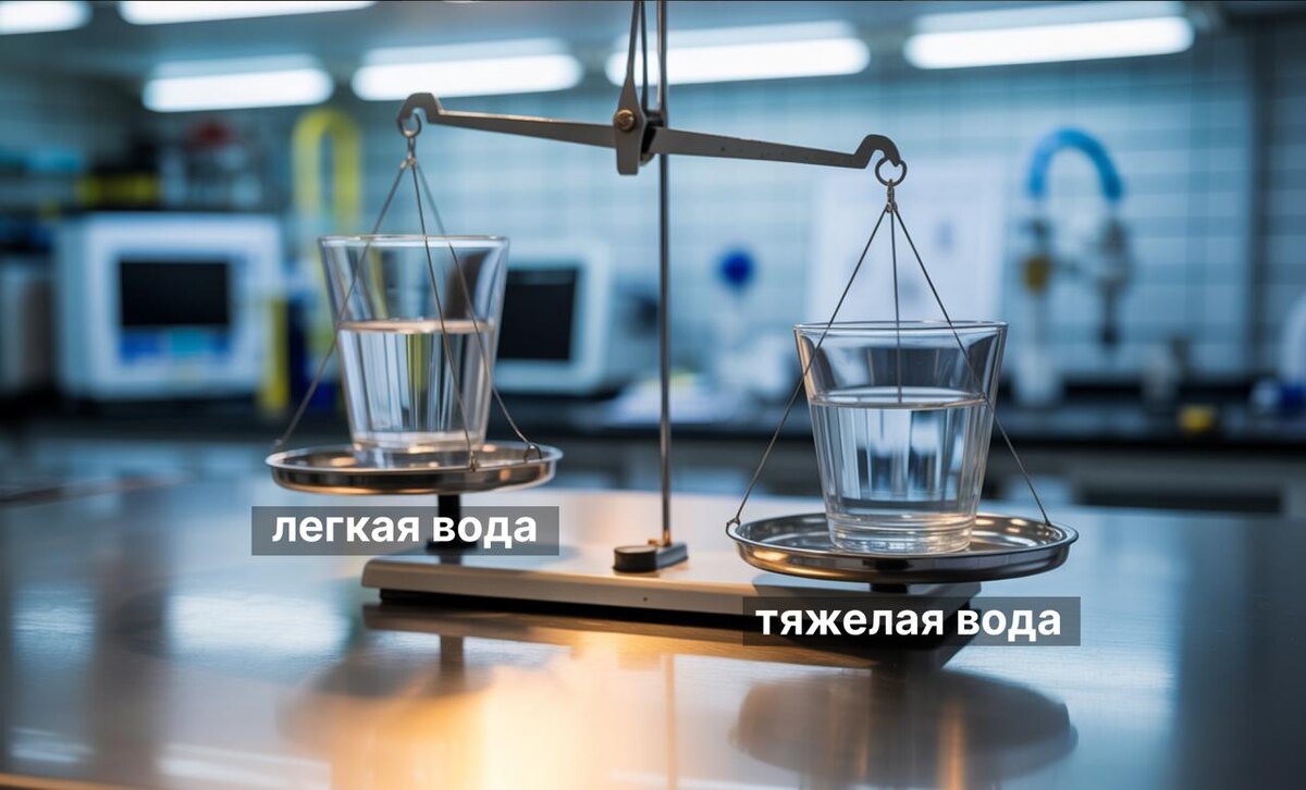 💧 Вода - тяжелая, но нужная В атомных реакторах вода нужна не только для охлаждения, но и для замедления нейтронов — чтобы реакция деления шла стабильно. В большинстве АЭС для этого используют обычную воду. Но есть особый тип — тяжелая вода (D₂O). В молекуле тяжелой воды вместо обычного водорода (H) находится его «тяжелый брат» — дейтерий (D). Он весит примерно в два раза больше и гораздо хуже поглощает нейтроны. Это значит, что тяжелая вода позволяет реактору работать даже на природном уране, без дорогостоящего обогащения. Плюсы: экономия на топливе и возможность использовать местный уран. Минус — производство тяжелой воды дорого и энергозатратно. Самый распространенный способ — процесс Гирда (H₂S–H₂O). В нем воду многократно пропускают через установку с сероводородом при разных температурах. В этих условиях дейтерий постепенно «переходит» из одной фазы в другую, и его концентрация растет. После десятков циклов получают воду с очень высоким содержанием дейтерия. Такие реакторы ес