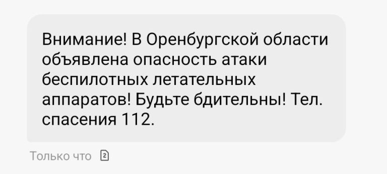 Оренбуржцы получают смс об угрозе атаки беспилотников