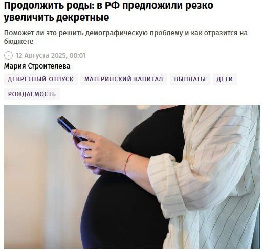 🤩В России предлагают увеличить декретные: с 40% до 60% от дохода и платить их 2,5 года при рождении второго ребёнка