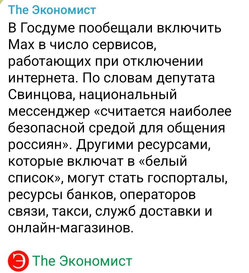 Зачем с упрямством ёжика лезущего на кактус нам пропихивают этот пресловутый MAX? С такими темпами, я не удивлюсь, нам ещё и доплачивать предложат за скачивание модного мессенджера. Вопрос. А почему такая срочность? Я понимаю, что зона интернета и российского инфополя для некоторых представителей власти в России стала реальной угрозой, я понимаю, что для них предпочтителен возврат к телевизору, но на дворе уже XXI век, а не век XX. Конечно, наша посконная, бюрократия может начудить и откатить до времён телеги с попами, но весь их бизнес напрямую связан с интернетом, а это прямые финансовые потери. Значит, тут что то не так. Явно видно, что MAX планируется быть платформой для чего то нового, экспериментального. Ну как чудо продукт от ребе Гинцбурга. Реально они скоро умолять нас станут перейти на модную платформу, ну если шантаж и принуждение не сработает😉