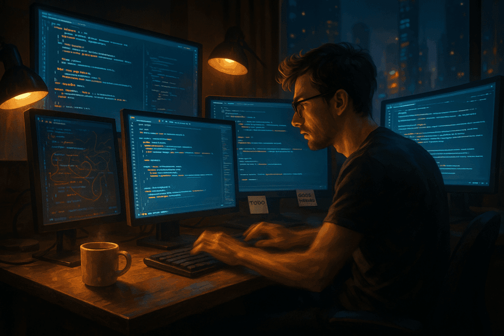 Результаты удивили даже меня. Фичи я стабильно выпускал примерно в три раза быстрее, чем разработчики с сопоставимым опытом. При этом я не работал по 12 часов в день, не вёл двойную жизнь программиста-отшельника и не гонял на фоне «ИИ-ассистентов» в стиле «код за секунду».