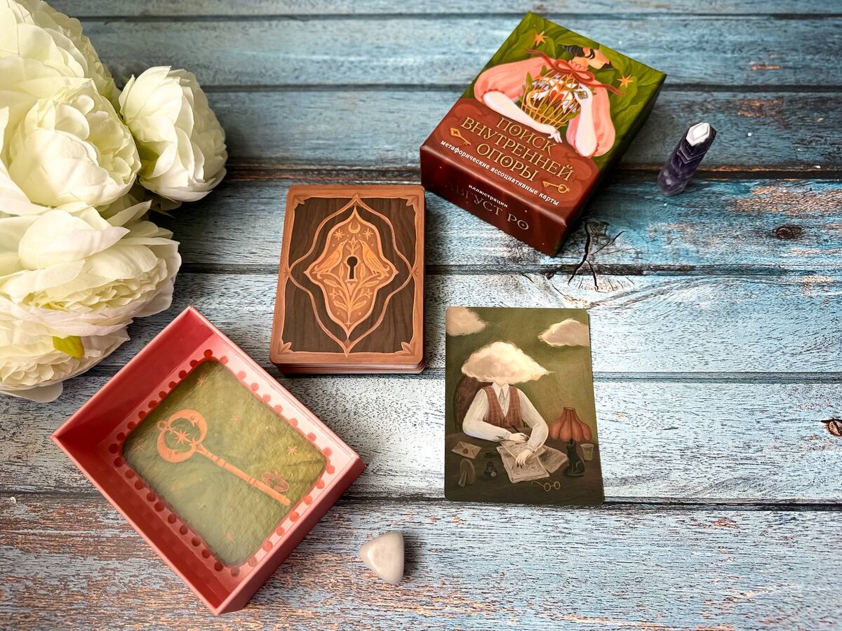 Иногда карты задают такие вопросы, на которые нельзя ответить сразу. Вот эта — из колоды «Поиск внутренней опоры». На ней человек за столом: документы, письмо, чернильница, лампа, фигурка кошки. Всё про порядок и земные дела. Но голова… превратилась в облако.