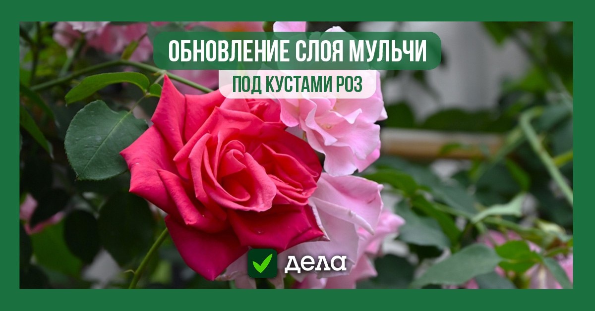 Обновление слоя мульчи под розами 🌹 По мере истощения обновляйте слой мульчи (например, корой крупной фракции, перегноем, шишками, хвойным опадом или сеном) под кустами. Толщина слоя из органики должна составлять 7-10 см. 🌹 Если ваши розы укрыты агротекстилем или галькой, обновлять мульчу не нужно, достаточно удалить сорняки, которые все же проросли.